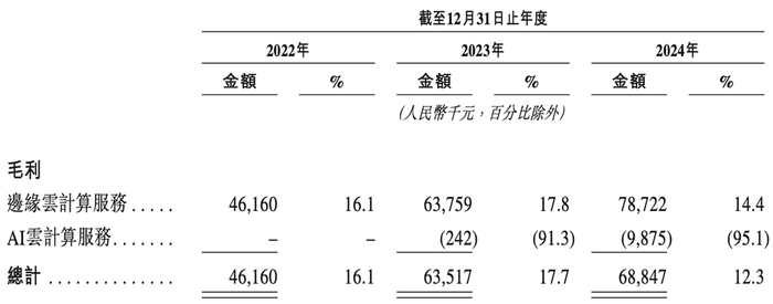 因业务处于早期开发阶段,且产生与服务及其他计算资源有关的设置成本,过去两年AI云计算服务业务录得毛损。
