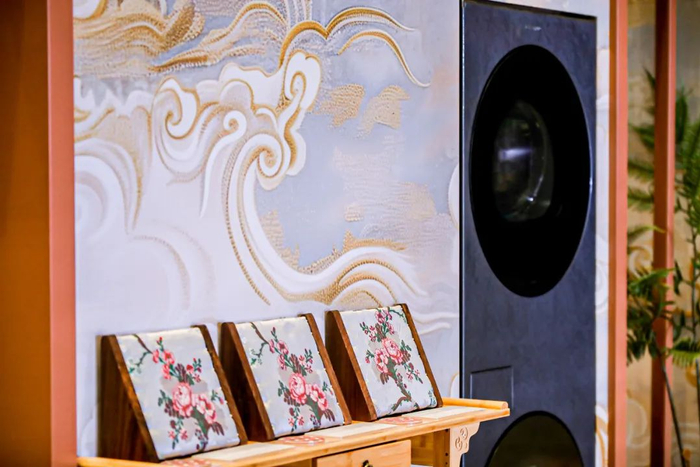 在衣物护理方面,卡萨帝洗衣机甚至敢挑战洗云锦、蜀锦等非遗面料。思享荟现场,南京云锦织造技艺国家级代表性传承人周双喜展示了两件云锦马面裙形成鲜明对比:一件经普通水洗后纹样明显变形,面料出现褶皱,还有勾丝和松散;另一件经由卡萨帝洗衣机护理后,无论形态、纹样、颜色都和洗前相差无几。
