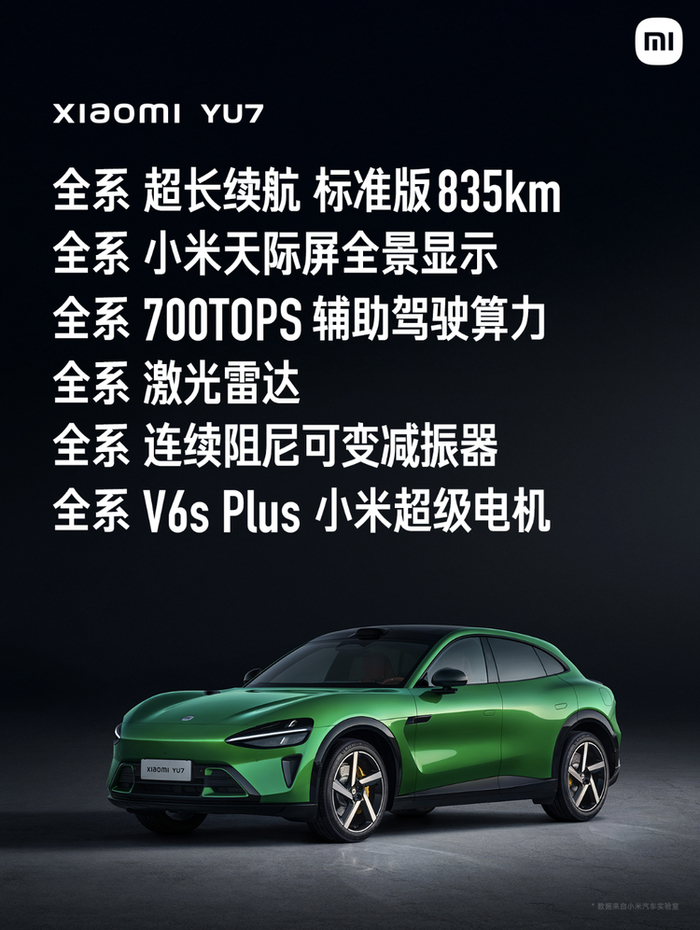 6月26日晚,小米YU7正式上市。作为小米集团旗下的第二款车型,也是旗下首款SUV,小米YU7的定位是“豪华高性能纯电SUV”。