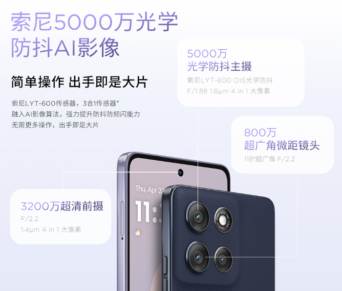再后置 5000 万像素 LYT-600 OIS 主摄 + 800 万像素超广角微距 + 200 万凑数辅助镜头...