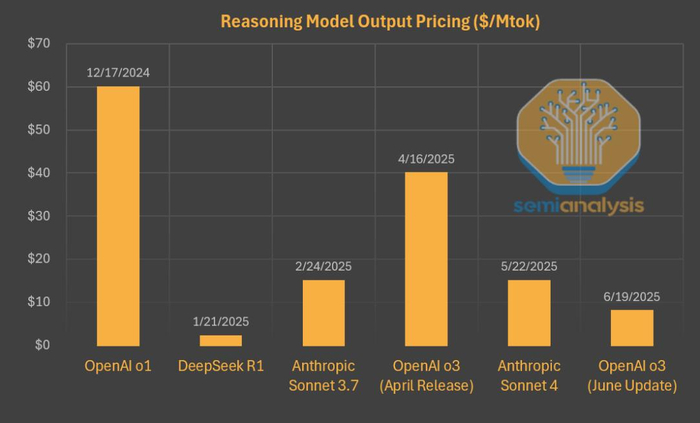 首先,它以一己之力把推理模型的价格打下来,OpenAI六月更新的o3价格相比o1直接打了2折。