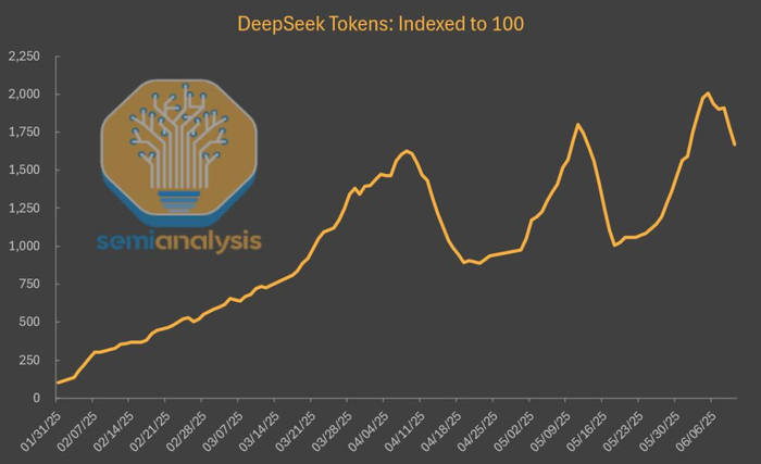 到了5月,全网DeepSeek模型产生的token中,来自DeepSeek本家的份额已经只占16%了。