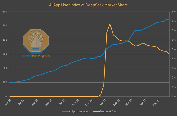 然而,DeepSeek自家的网站和API市场份额却不断下降,跟不上AI产品上半年持续增长的节奏了。