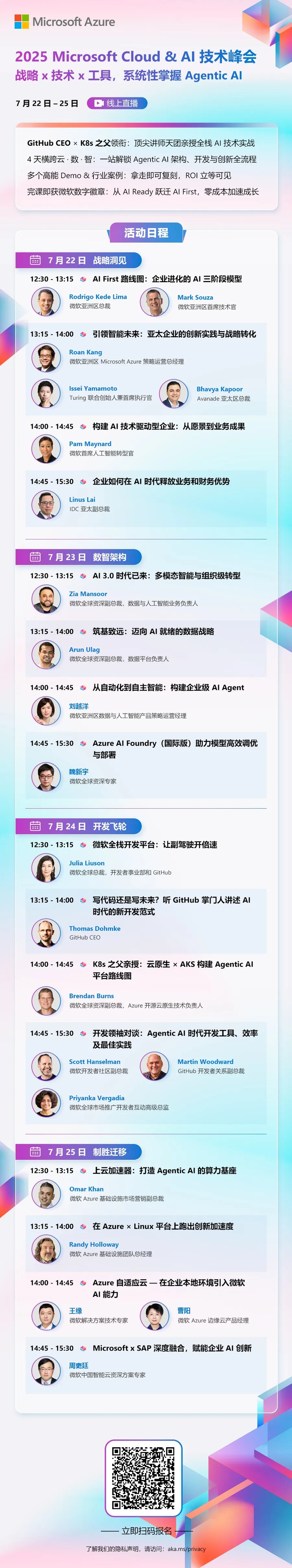 ★ 如果你正在评估下一个财年预算,或者筹划一场影响深远的业务重构,那么现在就有一条通往实践的捷径: 扫描下方海报二维码报名 7 月的「Microsoft Cloud & AI 技术峰会」,亲身体验从 Copilot 到多智能体的端到端演示。