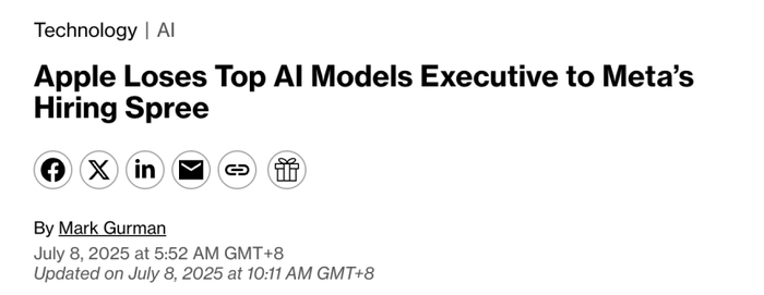就在刚刚,彭博社爆料称苹果的一员大将被Meta挖走。