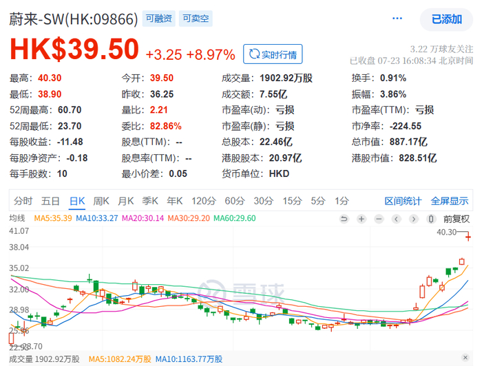 资本市场反应更为猛烈:自L90发布以来,截至目前,蔚来的市值已经狂涨了43%。
