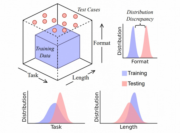 格式泛化旨在评估 CoT 推理对测试查询中表面形式变化的鲁棒性,这一维度对于确定模型是否已经内化了灵活的、可迁移的推理策略,或仍然依赖于训练期间遇到的具体模板和短语尤为重要。