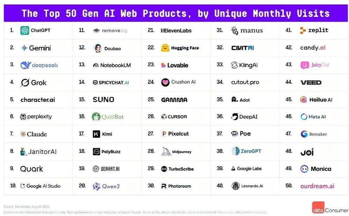 到了2025年,据a16z今年8月发布的第五版榜单,连续霸榜的AI陪伴公司实际仍有不少。