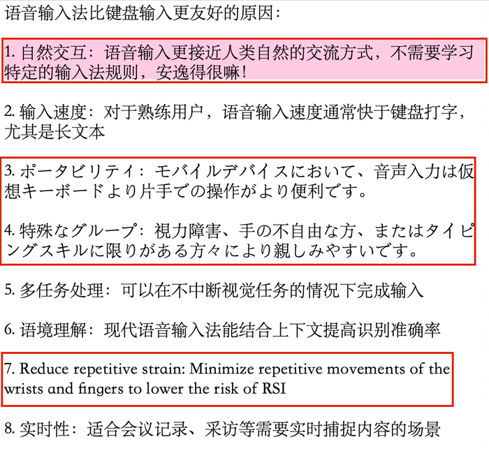 随后我又连续语音提问“小凹,智谱AI输入法的优势在哪里”和“为什么语音输入比键盘输入更友好”,感觉更像是在输入法里直接“召唤”了一个AI助手,答案不是弹窗形式出现,而是直接生成在光标位置,这两次提问都能正常给出解释性回复。