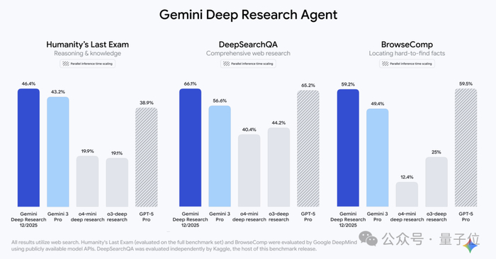 谷歌还配套推出了DeepSearchQA基准测试集,为深度搜索与研究任务提供了更全面的评估标准。