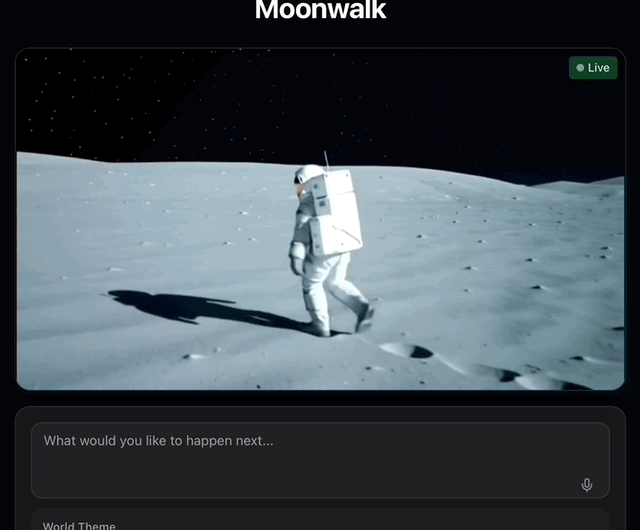 什么叫实时生成世界模型?简单来说,在这款AI模型中,用户只要设定好一个大概的世界观,它就能自己发展出一整段连续的画面和故事。就算用户不给它输指令,它也能自己「干活」。