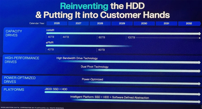 高带宽硬盘技术已向客户提供,使用双枢轴技术的HDD仍处于实验室研发阶段,并将于2028年推出。