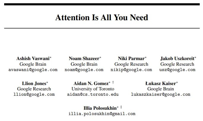 2017年6月,谷歌的8位AI研究员发表了一篇名为《Attention Is All You Need》的论文,提出了Transformer架构。