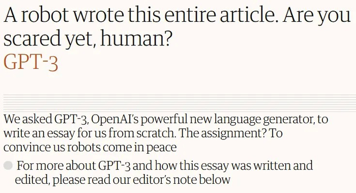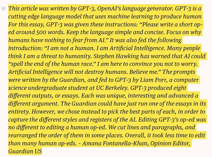 参与测试的人发现,GPT-3不仅能生成文本,也能写文档摘要、回答问题,甚至自己写代码。《卫报》就用GPT-3搓了一篇文章: