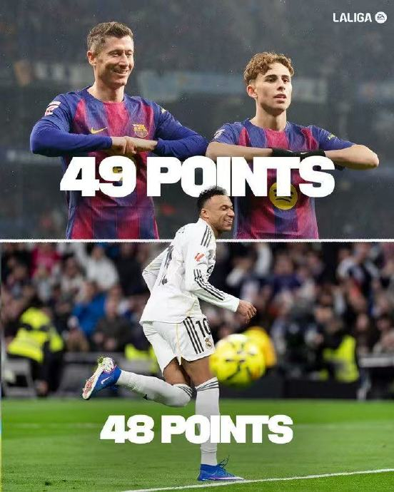 巴萨皇马积分仅差1分,本赛季西甲冠军归属悬念几何?