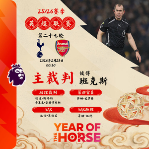 判罚风格两极分化:安东尼·泰勒是英超经验最丰富的裁判之一(执法场次超400场),以严谨著称,但对身体对抗的尺度把控常引发争议。例如: