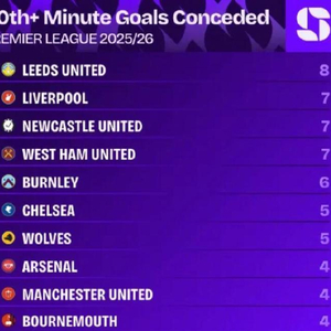 利兹联本赛季英超补时阶段已丢8球,成为联盟补时崩盘最严重的球队,这一现象是体能瓶颈、战术惯性、心理压力三重作用的结果。
