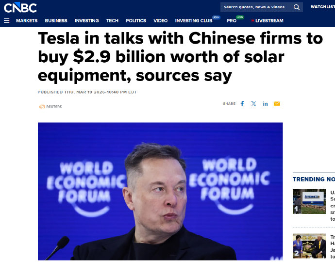 特斯拉百亿光伏订单传闻扰动A股,中国设备商的技术优势能否转化为实际商机?