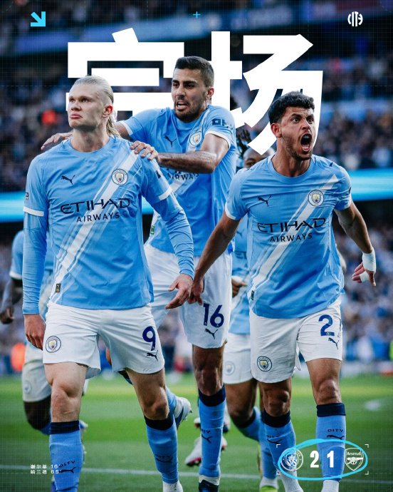 曼城凭借谢尔基第16分钟的突破首开纪录,但阿森纳2分钟后因多纳鲁马开球失误由哈弗茨扳平。哈兰德在第65分钟接奥赖利横传扫射破门,完成绝杀。
