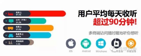 喜马拉雅则开始进行一个“喜马拉雅inside”的计划,也就是和多家外部公司合作,提供自己的接口,进行内容输出。这一点,蜻蜓也在做,但从用力大小来看,喜马拉雅似更猛一些。