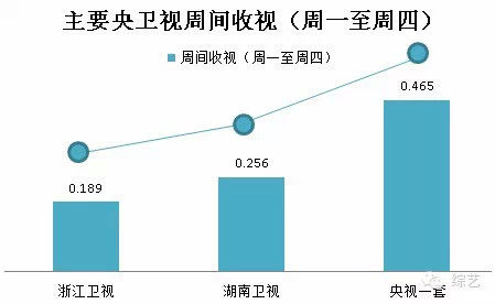 最为重要的一点就是收视提升明显,多数省级卫视通常会采取周中电视剧(四天)+周末综艺(三天)的编播策略,周中多数卫视的全天收视均在0.1以下最高也不过0.2左右,而播出综艺的周末最高则有可能冲至0.5可谓提升明显。