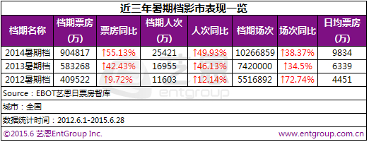 2014年,暑期档狂吸90亿票房,同比增幅高达55%,出现了《变形金刚4》(19.75亿)《分手大师》(6.64亿)《后会无期》(6.24亿)《小时代3》(5.19亿)等票房赢家。从目前档期表看2015年暑期档将上映的影片总数超过90部,在数量上绝对可观。