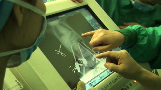 检查结果一出,多家医院均表示无能为力。最终,北京儿童医院普外科、骨科、胸外科、急诊、麻醉科、影像中心与超声科等多科室决定共同为子萱“取针”。这是一次史无前例的手术,这12根钢针遍布子萱的身体,不停游走,有1根已经靠近心脏,肝、脾、肾、子宫、直肠等部位均有钢针扎入。