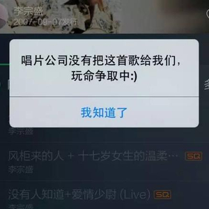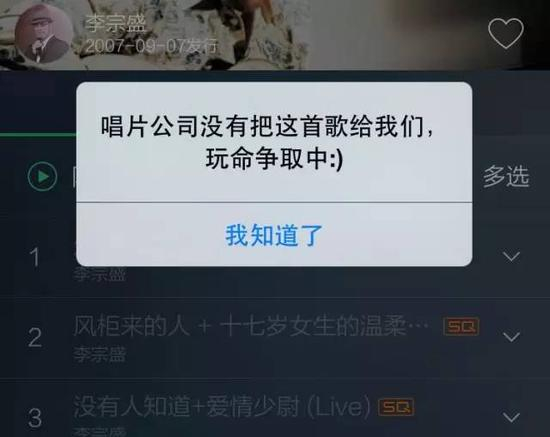 在国内各个在线音乐平台当中,腾讯是拥有独家版权最多的一家,但即便如此,腾讯也未能囊括全部受欢迎的音乐板块。在QQ音乐,李宗盛、刘若英等滚石歌手,以及五月天的歌曲都已无法试听,这些音乐的独家版权在阿里。