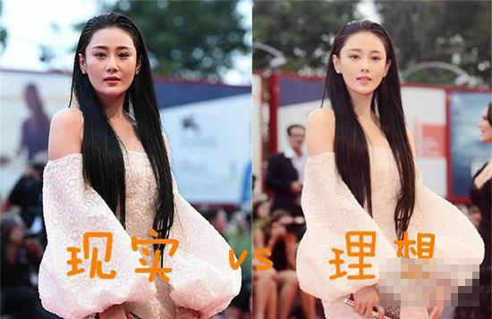 一直跟范爷暗自较量的张馨予同样败在镜头前,未PS照放出来后,仙女分分钟从天上摔到地下,冰雪肌肤都成了疙瘩地
