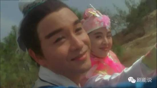 《东成西就》里“贱兮兮”地跟王祖贤练干柴烈火掌、情意绵绵剑,还跟梁家辉大唱《双飞燕》,也让人觉得搞笑又不低俗