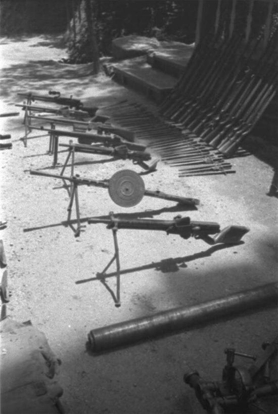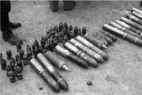 日军发动豫湘桂会战缴获的国民党军木柄手榴弹、捷克式轻机枪和美制航空炸弹