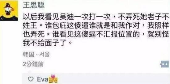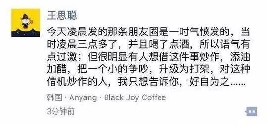 啥玩意儿?老公真的做出了在韩国大庭广众欺负女孩子的事情?看到这里,大家估计和一样,惊讶得长大了嘴巴。随后,王思聪又在自己的朋友圈,发了算是解释的一句话吧。
