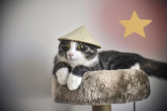 戴着越南风格帽子的猫。