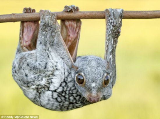 中国日报网8月18日电(刘宇) 据英国《每日邮报》17日报道,印度尼西亚的一只想象力丰富的飞行狐猴因为太累了就用前后肢把自己挂在树上,把身体当做吊床小憩。