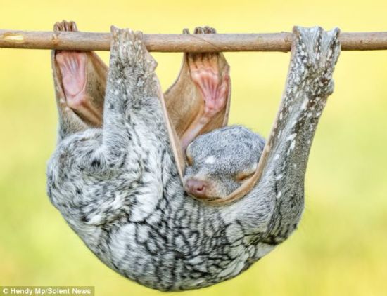 聪明飞行狐猴用身体做吊床小憩 睡态舒适自然[1]- 中国日报网