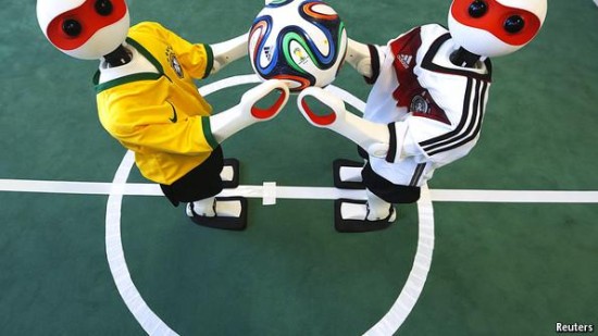 梅西vs机器是很多评论家在今年世界杯决赛之前鼓吹的一种观点,原因在于德国队纪律严明,半决赛以摧枯拉朽的方式击败了东道主巴西队。尽管对德意志民族的精确性做出了如此描述,但实际上德国队的队员们毕竟还是人。7月19日在巴西东部城市若昂佩索亚(Joao Pessoa),最新一届的机器人世界杯(RoboCup)开幕,这次比赛的参赛者是机器人运动员,而不是人类运动员。因此,人们不禁会想,什么时候真正的机器能够征服这项体育赛事?
