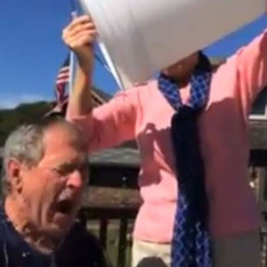 全球名人为公益“湿身” 小布什捐钱后被妻浇水
