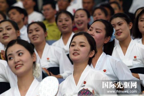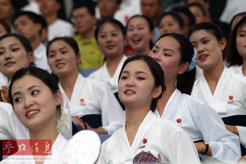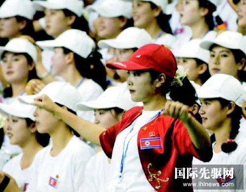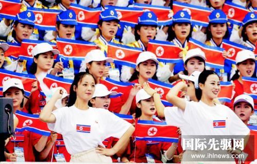 北朝鲜特地派出了由大约300名年龄不到20岁的年轻女性组成的拉拉队。她们大都来自艺术院团,个个美丽大方。