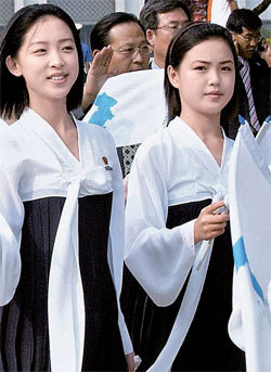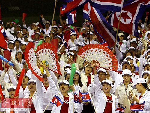 在釜山亚运会开幕式上,北朝鲜和韩国代表团共同入场,这在韩国掀起一股南北融合热潮。而北朝鲜派出的美女拉拉队也受到韩国民众欢迎。
