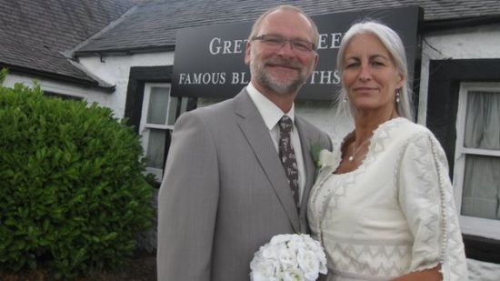 52岁的埃迪和49岁的莎拉从英格兰南部海滨小镇“私奔”到格雷特纳来结婚,事先没有通知任何亲朋好友,希望回家后能给他们一个惊喜。
