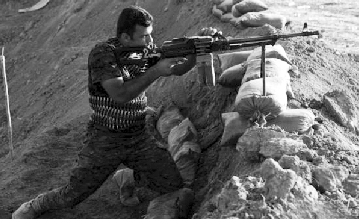 资料图片:这是8月23日在位于伊拉克北部城市基尔库克一条通往提克里特的公路上拍摄的“伊斯兰国”极端武装一方的阵地。新华社发 迪娜·阿萨德摄