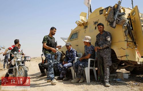 伊拉克什叶派士兵5日驻守在从“伊斯兰国”武装分子手中夺回的阿迈尔利镇的一处检查站(路透社)
