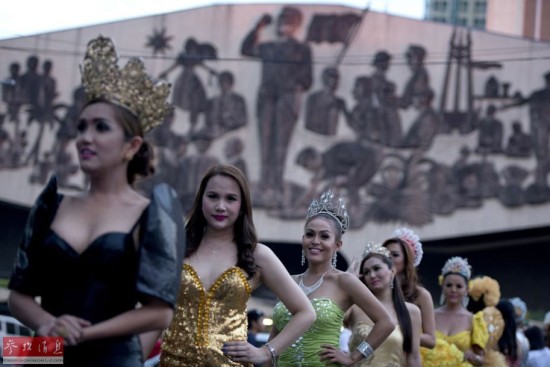 5月18日,在菲律宾马尼拉,变性人参加游行,庆祝反对“同性恋恐惧症和变性人恐惧症”的国际日。