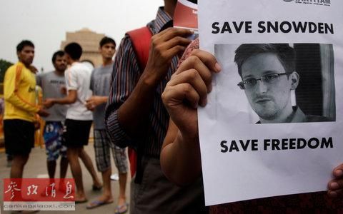 2013年7月7日,印度新德里民众举行活动声援斯诺登。(资料图片)