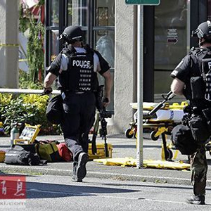 资料图片:在美国一起校园枪击案现场奔跑的警察。
