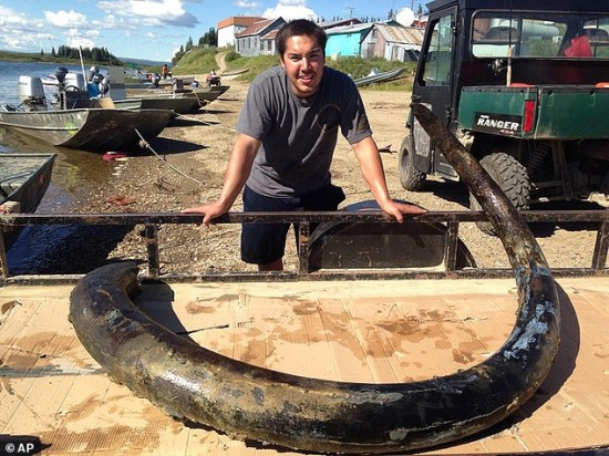 据英国《每日邮报》报道,美国一男子安德烈在阿拉斯加河发现一根重达73.4公斤的猛犸象牙,巧合的是,22年前,安德烈的妈妈和当时3岁的安德烈也在这条河里发现过一根重约36公斤的猛犸象牙。目前猛犸象牙市场价格是每磅461人民币,已有买家与安德烈洽谈。古生物学家格思里说大陆的猛犸象在约12000年前就已灭绝。(编译:韩笑)