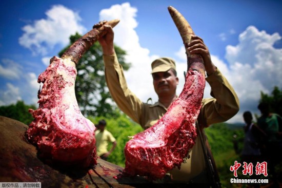 印度一野生大象村落附近触电身亡 工作人员取走象牙(高清组图)