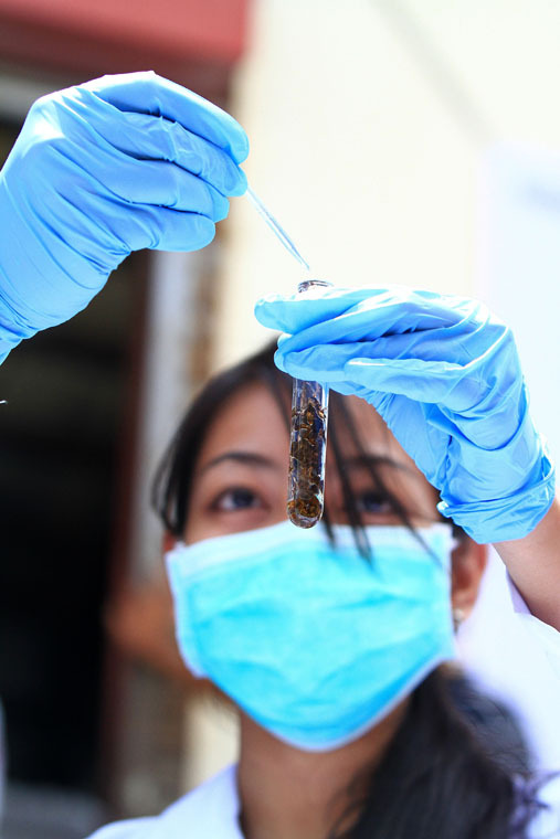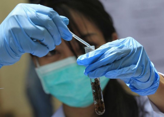 6月25日,在菲律宾甲米地省,菲律宾毒品管制局的工作人员检测缴获的大麻制品。新华社发(乌马利摄)