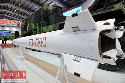 2012年11月15日,在第九届中国国际航空航天博览会上,由我国自主研制的FD-2000防空导弹武器。