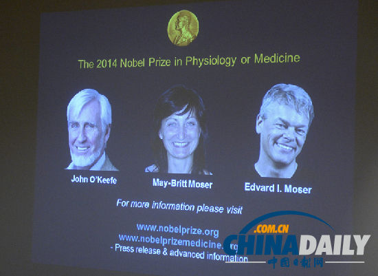 (原标题:三名科学家凭借大脑GPS获诺贝尔生理学或医学奖 - 中文国际 - 中国日报网)